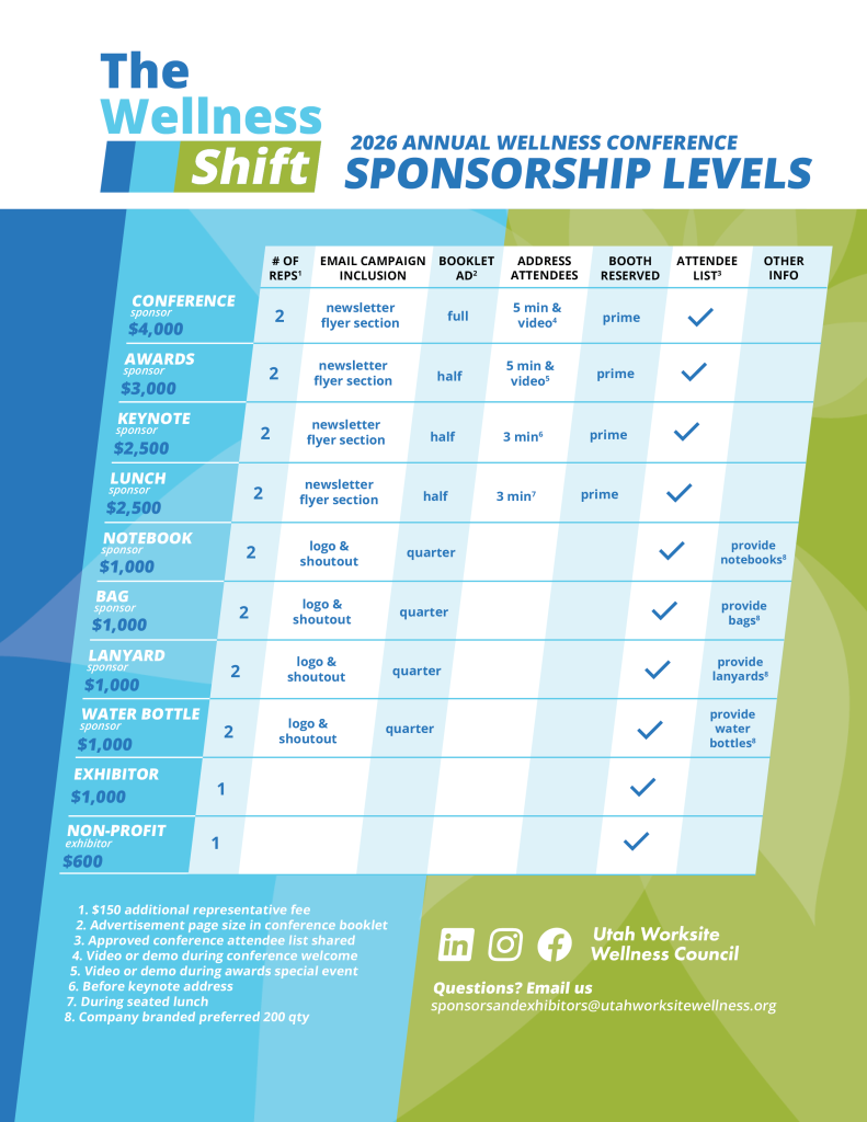 Questions? Email sponsorsandexhibitors@utahworksitewellness.org